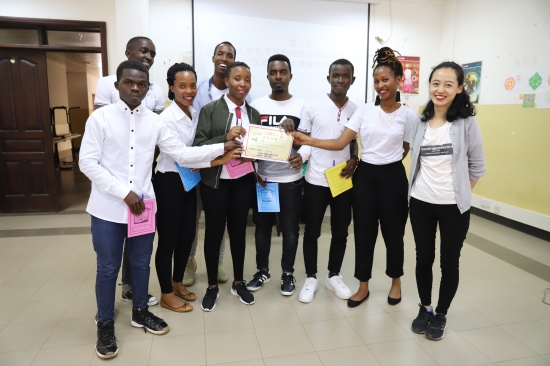 一曲抒情的中国现代歌曲《刚好遇见你》拉开了此次“汉语之星”大赛暨汉语桥初赛的序幕。当天的比赛共分为听力冲击波、汉语演讲、汉语知识大考验、最爱中国字和才艺表演五个环节。比赛中,最激动人心的要属才艺表演。选手们通过歌曲演唱、朗诵、舞蹈、武术、情景剧等表演等形式展示了各自的汉语才艺,选手们非凡的的表演博得了在场观众的阵阵掌声。经过五轮激烈角逐,决出比赛冠亚军和“音乐之星”“舞蹈之星”“语言之星”等多个才艺奖项。何美、张飞以高分脱颖而出,摘得冠、亚军。他们将于4月27日代表经贸大学吉孔多(GIKONDO)教学点参加第十八届“汉语桥”世界大学生中文比赛•卢旺达赛区复赛。