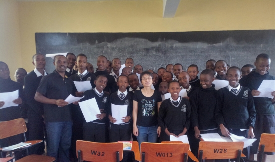 启智中学是卢旺达一所有名的中小学校,该校是通过卢旺达孔院和该校领导双方的多次共同努力,于今年1月顺利地开设了汉语课。活动开始之前,首先请孔院的优秀学员巫山平同学给同学们分享汉语学习的心得与体验;其次,外派汉语教师叶泽梅向同学们简要介绍了地大物博的美丽中国,希望大家认真学好汉语,了解博大精深的中国文化,从而提升自己的能力;随后,汉语教师叶泽梅教同学们演唱最入心、最动听的汉语歌曲《我和我的祖国》,我和我的祖国是子女和母亲的关系,是大海和浪花之间的关系。这首歌曲虽然有一定的难度,但是卢旺达学生对音乐独有的天赋,他们很快地跟上了节奏,师生们一起深情并茂地演唱了起来,同学们唱出了母与子的拳拳之心,感受了大海与浪花的忧乐之据。最后,活动在同学们优美的歌声中结束。