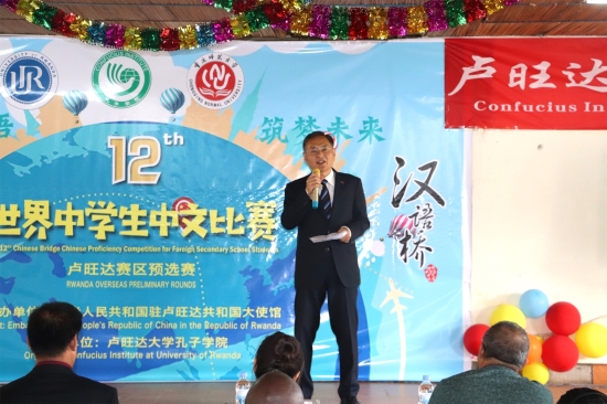当地时间6月9日下午,第十二届“汉语桥”世界中学生中文比赛·卢旺达赛区预选赛决赛在卢旺达大学雷梅拉(REMERA)校区萨拉小礼堂(Salle Polyvalent)成功举办。中国驻卢旺达大使饶宏伟、卢旺达教育署署长艾勒(IRENEE NDAYAMBAJE)、卢旺达教育学院孔子学院下设六个中学教学点领导及代表、中资企业联合会代表、以及新闻媒体代表等出席了本次活动,来自六个中学教学点的两百余名学生到场观看了比赛。本届中学生汉语桥决赛是卢旺达孔院建院十周年来规模最大、影响最为深远的一届。