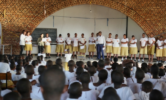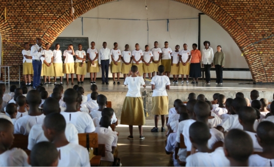 当地时间6月12日下午,卢旺达大学教育学院孔子学院下设E.N.D.P.K教学点举行学生会换届选举会。校长费勒名那·尼拉胡库(Sister Philomene Nyirahuku)、教务校长马塔巴如·本杰明(Matabaro Benjamin)、学校学生会及新闻负责人达安巴列·瓦莱里(Ndayambaje Valery)及600多名学生参加了此次选举会,教学点汉语教师陈晓燕也应邀,并与本杰明校长一起为离任学生颁发了荣誉证书。