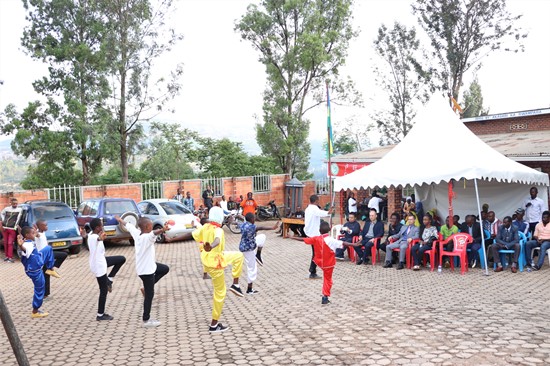 当地时间11月24日下午,卢旺达大学孔子学院走进基加利市亚米兰博区(Nyamirambo),举办了以“拒绝毒品 反对性别歧视”为主题的中华武术进社区活动。参加活动的有区青年发展委员会代表、亚米兰博区(Nyamirambo)警察局代表文森特(Vincent GASANA)、卢旺达慢性非传染性疾病联盟新闻主任刘易斯先生(Ngabonzima Louis)、卢旺达武术协会、螳螂拳武术俱乐部,卢旺达孔院中方院长曾广煜和部分教师代表、还有500余名鲁瓦帕拉区(RWAMPALA CELL)的居民群众。