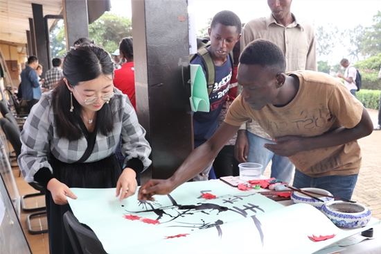 当地时间12月6日在卢旺达大学教育学院孔子学院本部医学院校区,成功举办了系列活动之一的“中国文化校园艺术节展览”。此次活动分别由中国武术集锦、中国结·中国情、中国书法荟萃、品茶艺·讲汉语、中卢传统服饰文化体验等展台组成。中国驻卢旺达大使馆政务参赞邢玉春女士、孔子学院全体师生、来自卢旺达大学各个校区对汉语及中国文化感兴趣的的学生、嘉宾以及当地市民约200余人踊跃参加并体验了两国文化的差异与融合。展会期间,参观者欢歌笑语不断,沉浸在热情洋溢的欢乐气氛中,本次活动取得了圆满成功。