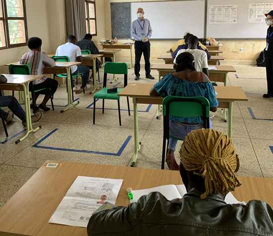 卢旺达考点负责人曾广煜介绍道,之所以在疫情之下仍组织线下考试,是因为卢大孔院是卢旺达全境范围内唯一一个HSK考点,2020年以来有大量考生向孔院提出考试需求,卢大孔院尝试组织居家网考,但绝大多数考生无法满足居家网考的条件。卢大孔院克服人员不充足,防疫任务重等诸多困难,满足当地考生需求。很多考生考前一直担心这次考试能否如期进行,直到3月15日晚卢旺达政府发布的最新疫情防控措施允许,大家才如释重负。