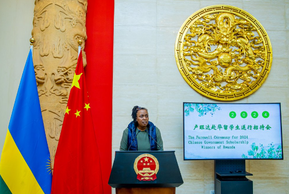 克里斯蒂娜在2024年卢旺达赴华留学生送行招待会上致辞