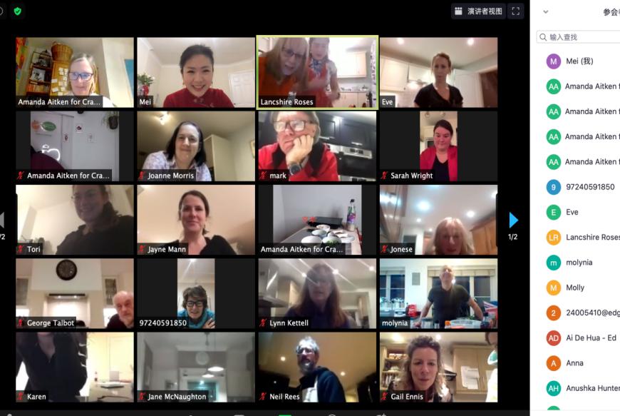 本次活动由孔子学院中方院长刘眉致辞开启。刘眉通过互联网热情洋溢地向参加活动的所有线上人员致以新春问候,借此机会介绍春节是中国最隆重最盛大的传统节日,精致的年夜饭是中华文化千年传承不可或缺的仪式,几千年来人们在此佳节团聚欢庆、共享盛宴、祈福攘灾、畅想未来。两个小时的活动转瞬即逝,参与者意犹未尽。英国知山大学副校长乔治、外方院长马克、知山大学师生员工、当地社区民众等等八十多人参加了本次活动。吾国、吾土的味道在新鲜忙乱、欢乐祥和的气氛中散开,随着冒着热气的饺子呈现在镜头前,祖国的山川风物和中英人民的友谊都凝结在这年夜饭中。