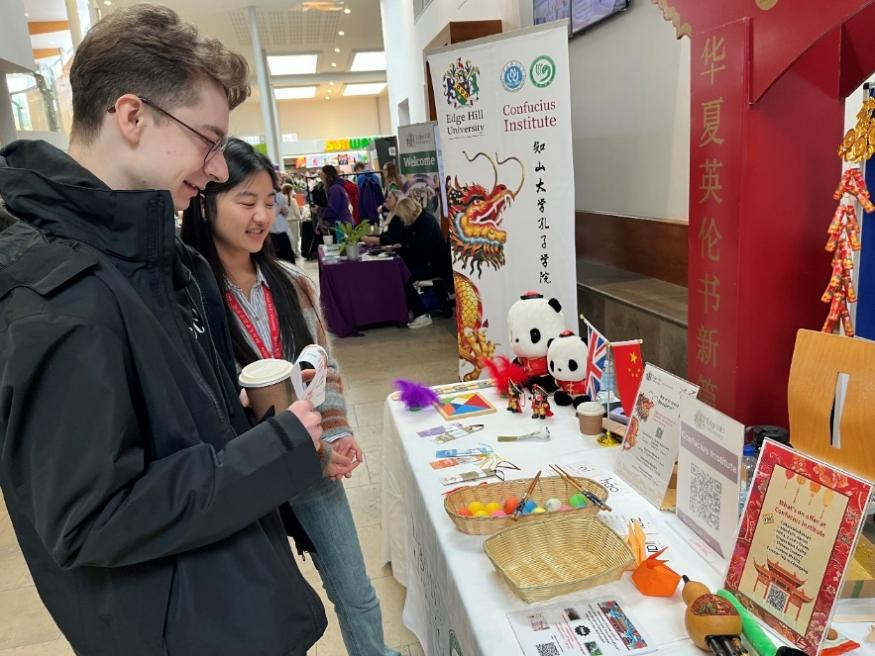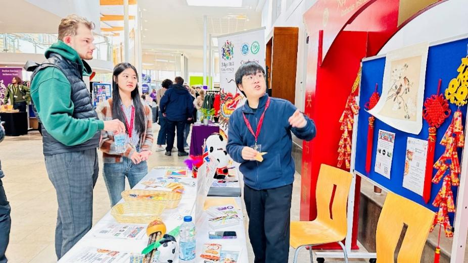 9月29日,英国知山大学孔院日庆祝活动在知山大学学生活动中心顺利举行,知山大学校长John Cater亲临活动现场对孔院工作表示关心和慰问。本次活动恰逢知山大学迎新,有4000余名来自各个国家的新生前来报到,孔院鲜明中国特色的展台和丰富多彩的活动吸引了大量学生及家长参与。