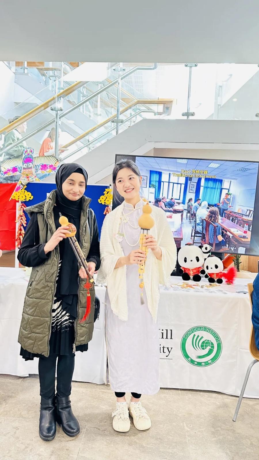 为增添活动的趣味性,知山孔院还精心准备了可爱的熊猫书签、京剧脸谱钥匙扣等精美礼品,受到了大家的热烈欢迎。此外,孔院还准备了中国传统美食“春卷”,吸引了众多师生前来品尝,他们对中华美食的喜爱之情溢于言表。