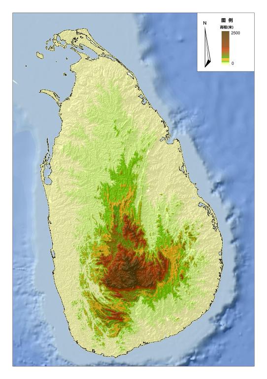 斯里兰卡地形图
