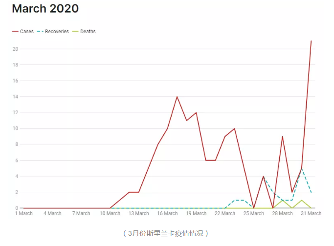 3月11日,斯里兰卡出现第一例本土感染病例,之后又有多人确诊,从此斯里兰卡进入非常时期。政府颁布了严格的管控措施,停工停学、关闭入境口岸并开始长达两个月的宵禁,停止一切公共活动。为遏制疫情,斯政府积极学习中国经验,推出系列措施。3月28日,斯里兰卡报告了首例新冠死亡病例。