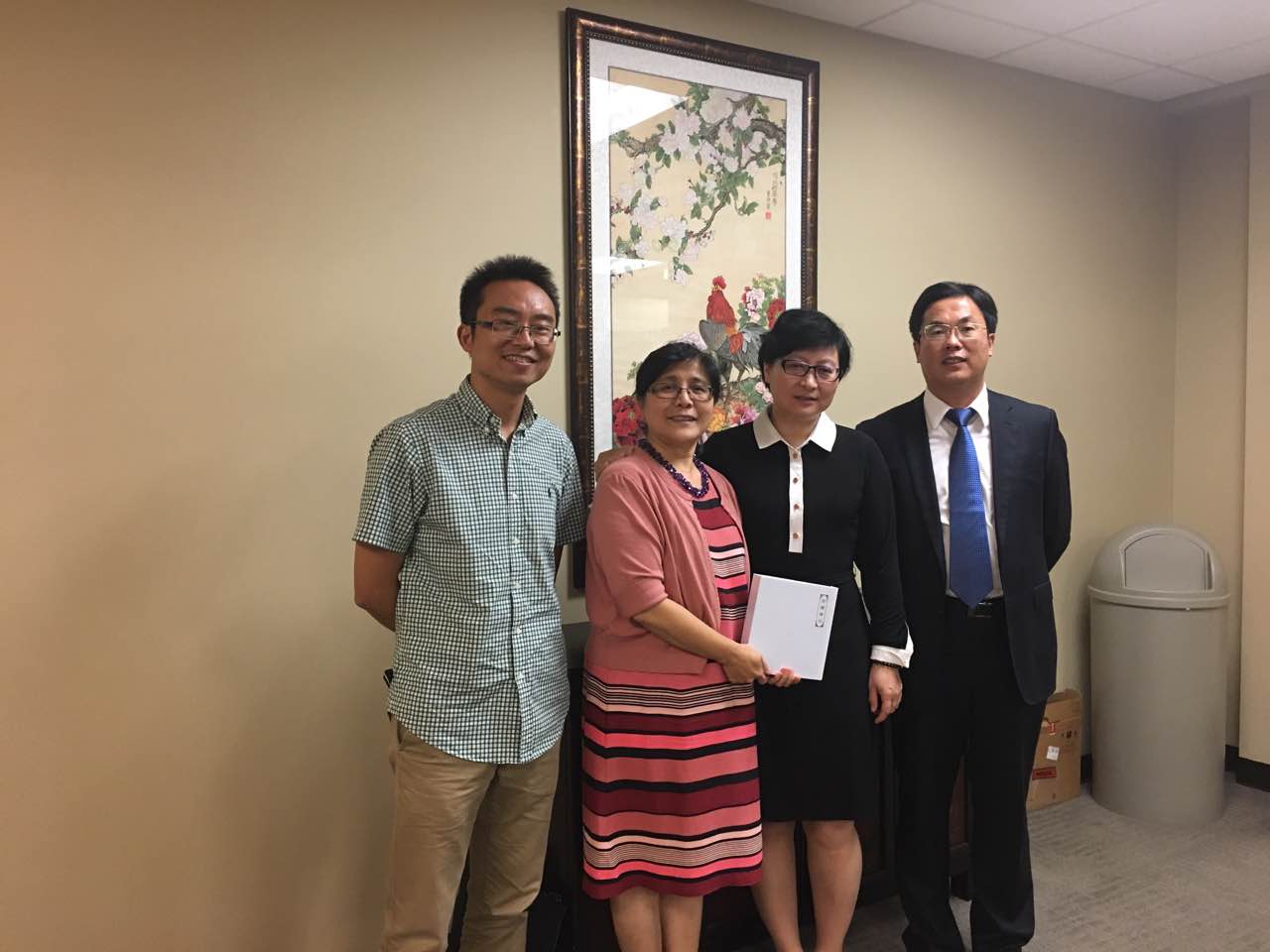 特洛伊大学孔子学院以服务阿拉巴马州中国语言文化推广为己任,除在主校区设有孔院中心外,还在大学的两个分校区设立了分院。参观完特洛伊大学孔院本部中心和蒙哥马丽校区分院后,两位领事对于特洛伊大学孔子学院十年的发展以及大学对孔院的重视程度有了更进一步的了解。无论是从规划布局、投入保障上,还是从场地面积、设施设备上,特洛伊大学孔子学院都给来访宾客留下难忘的影像。两位领事也十分关心孔院未来的目标定位与特色发展,与孔院的两位院长进行了深入的交流座谈,鼓励孔院按照今年理事会上提出的“打造美国东南部汉语师资本土化培训中心,汉语教材本土化研发中心”的目标,精心谋划,积极推动,力争取得更大、更好的成绩。