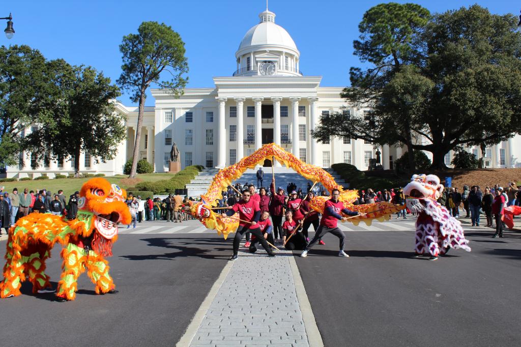 日在蒙哥马利市举行,特洛伊大学孔子学院在此次盛大游行活动中
