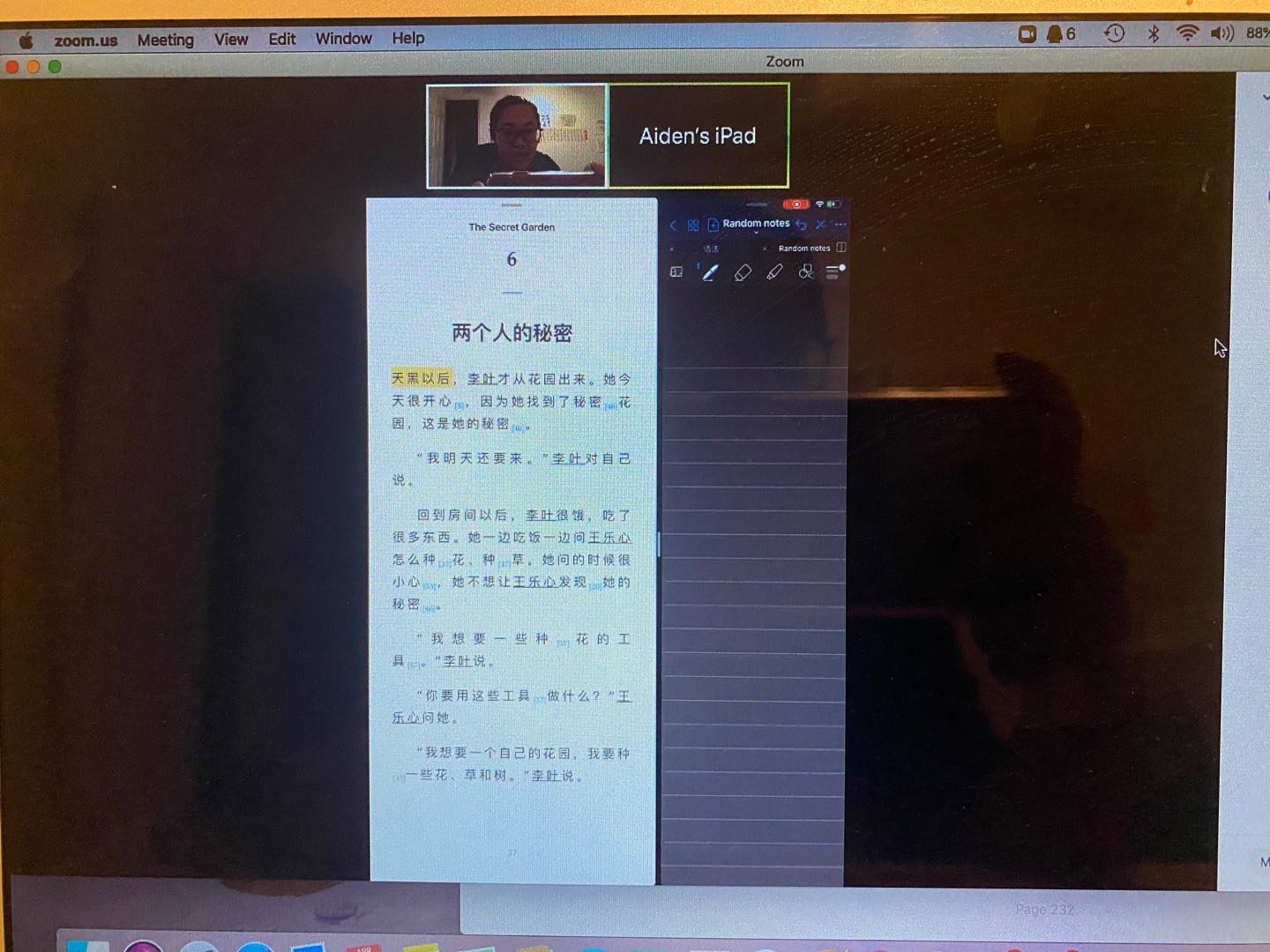 为了让学生更好地了解中国文化,读中文作品可以让学生更好地了解中国社会与中国文化,并且锻炼学生的中文识字与发音能力。所以,我按照学生的水平不同,找来和学生汉语水平相当的文学作品,在Zoom平台上和学生一起完成阅读训练。