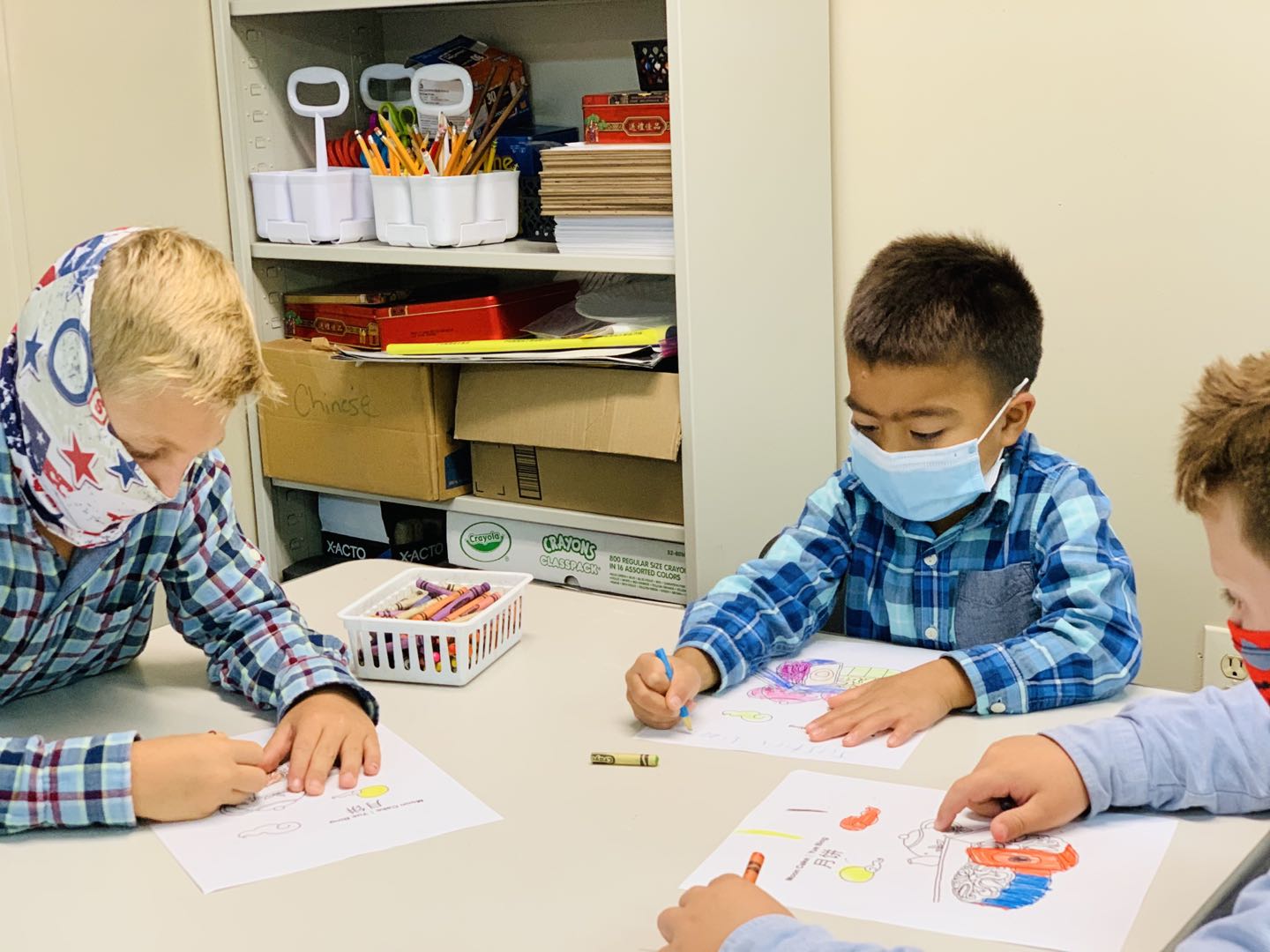 学生们制作中秋贺卡