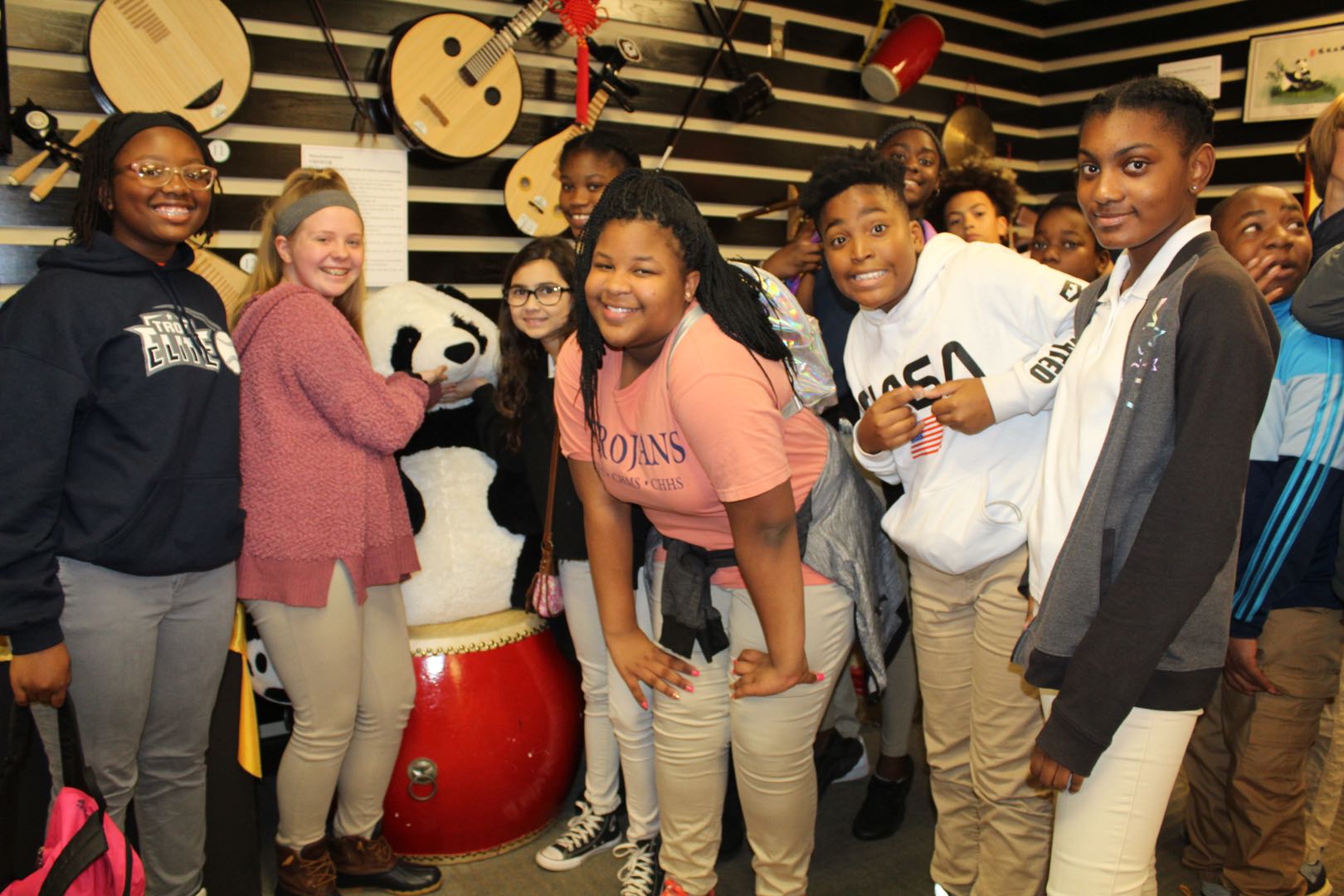 除此以外我还在课堂上建立竞争奖励机制,对于课堂参与度高、课后作业完成度好、协助维持纪律的学生奖励“孔院一日游”,带他们到特洛伊大学孔子学院中国文化展厅感受和体验中国服装、中国乐器、中国茶道、中文书法等。