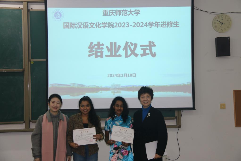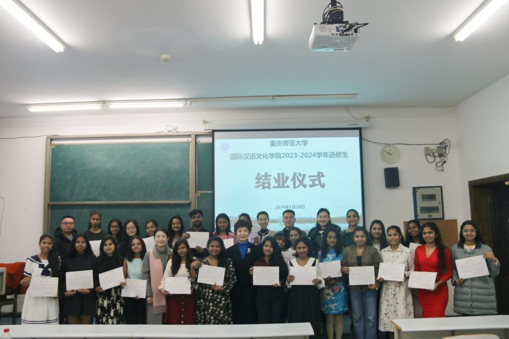 2024年1月18日上午,我院在7504教室举行了2023-2024学年一学期进修生结业仪式。张礼慧院长、刘眉副院长、部分任课教师及来自斯里兰卡的25名学生参加结业仪式。经过一学期的努力学习,25位学生全部完成了中级汉语综合、口语、听力、阅读及中国文化等课程的学习及考核。