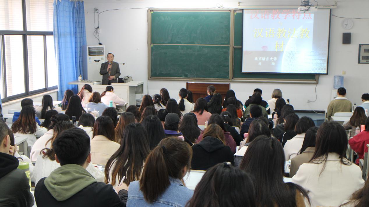 首先,刘老师细致入微地讲解了汉语教学特点,让学生们对二语习得者学习汉语的特点有了一个较为系统而全面的认知,他强调“教无定法,教有定则”,即在掌握正确的教学原则和熟悉多种教学方法的情况下去探索和钻研适合汉语特点的教学方法,同时也简单介绍了当前流行的教学法。