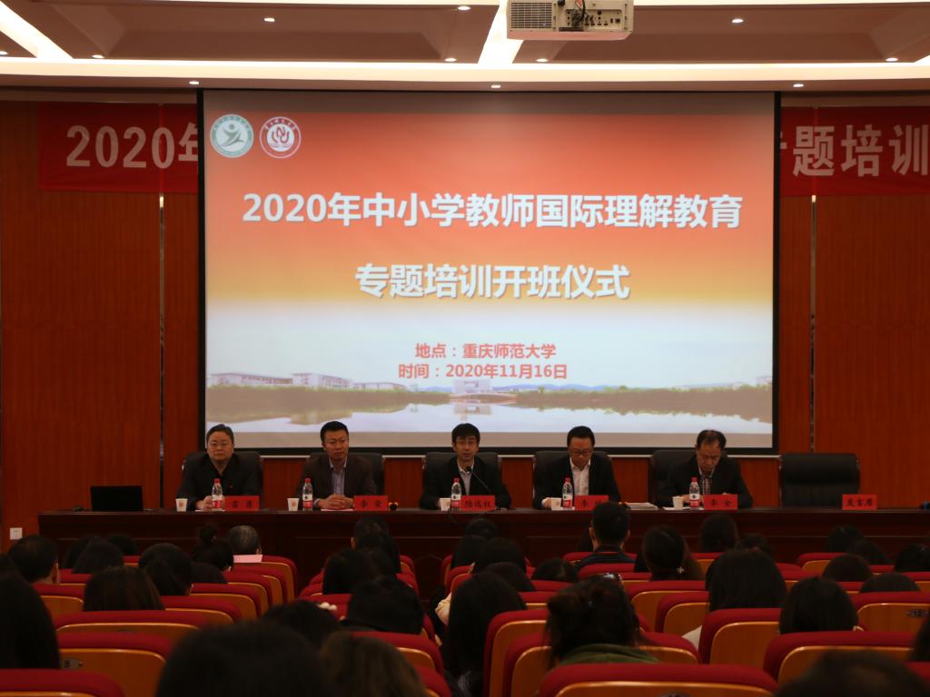 2020年11月16日上午,由重庆市教育委员会主办、mansion88主页承办的“2020年中小学教师国际理解教育专题培训”开班仪式在我校沙坪坝校区第五教学楼成功举行。mansion88主页党委常委、副校长陆远权、重庆市教育委员会国际处处长李斌、成都市教育对外交流中心主任李全、mansion88主页继续教育学院、mansion88主页负责人及参加此次培训的170余名学员等出席了开班仪式。开班仪式由mansion88主页院长雷勇主持。