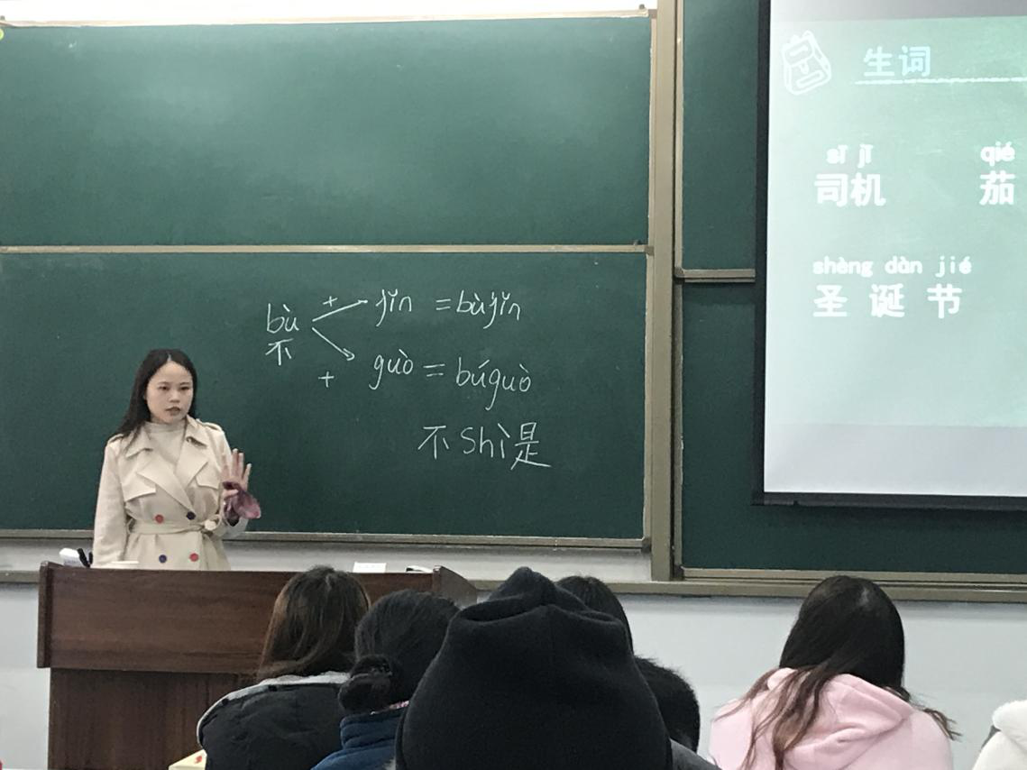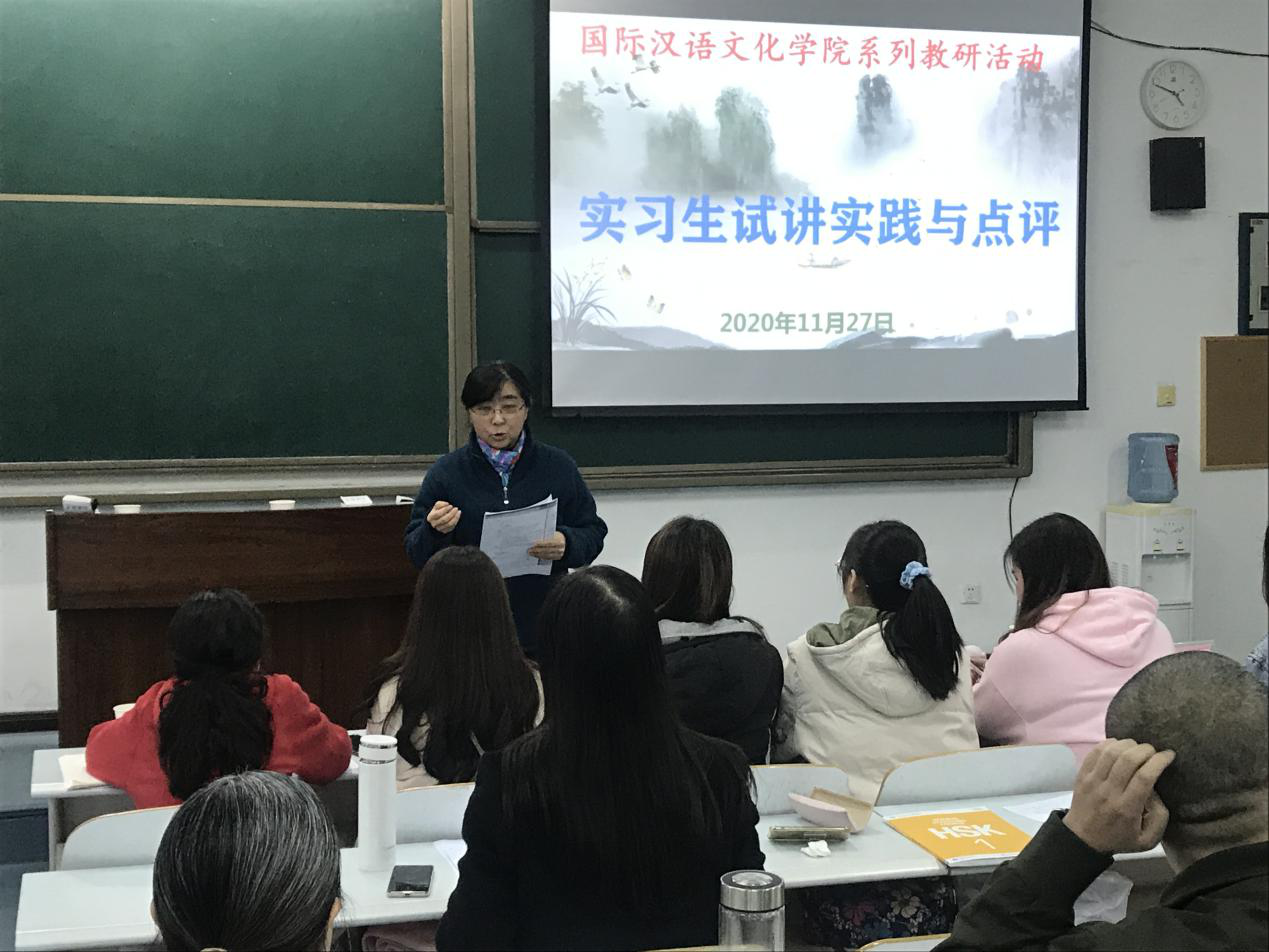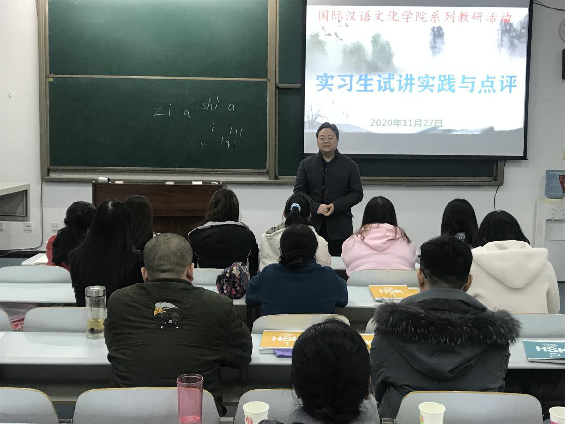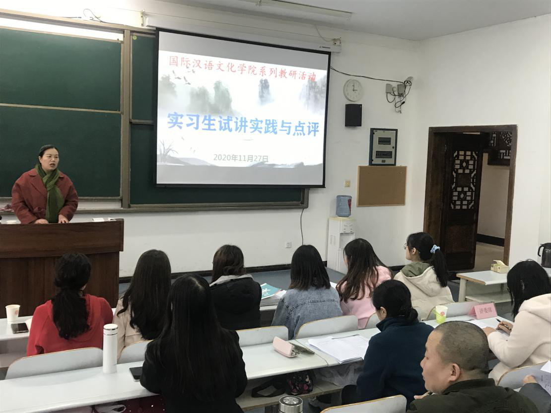 为提高实习生课堂教学技能,mansion88主页于11月27日、12月3日举行了两场教研活动,开展了汉语国际教育本科实习生教学试讲工作,同时对留学生课程教学进行了研讨。学院专任教师担任试讲评委,学院领导、全体实习生及相关任课教师参加了本次活动。