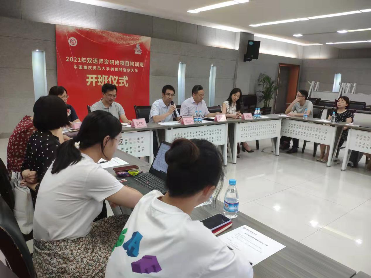 9月13日下午,美国特洛伊大学-mansion88主页2021年双语师资研修培训项目班开班仪式在我校综合办公楼会议室举行。校党委常委、副校长陆远权,国际处/国际学院、人事处、教务处等相关职能部门负责人以及学员参加了开班仪式。仪式由国际处处长兼国际学院院长雷勇主持。