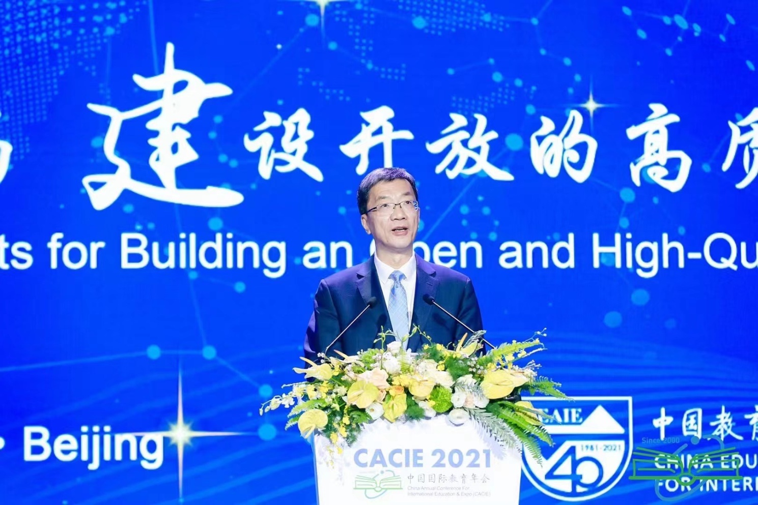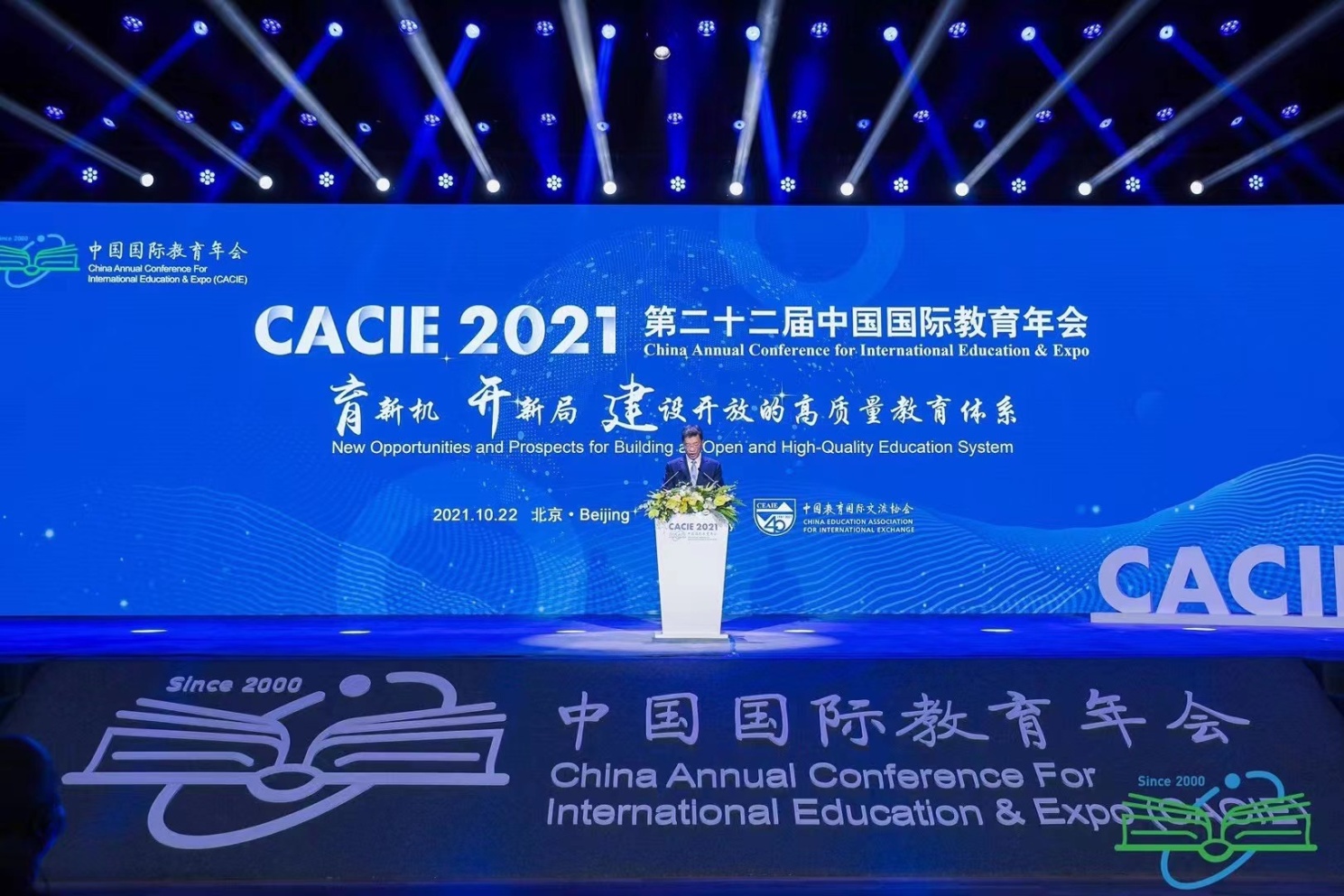 备受瞩目的中国国际教育年会全体大会于10月22日上午在北京国际会议中心举行,会议以“育新机、开新局,建设开放的高质量教育体系”为主题,分析研判新征程中教育对外开放高质量发展的实施路径,擘画全球教育合作新蓝图。中国教育部部长怀进鹏出席并讲话。