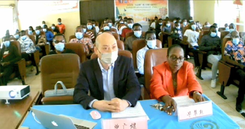 (卢旺达大学孔子学院外方院长碧翠丝女士(右)在开营仪式上发言)