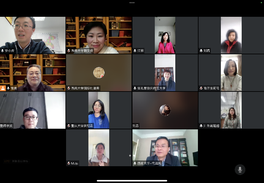 11月28日,重庆市国际中文教育协作机制工作推进会线上召开。会议由重庆市教育委员会国际合作与交流处江燕副处长主持,我市国际中文教育协作机制成员单位相关负责人共二十余位相聚云端。我院张礼慧院长、重庆市孔子学院工作联盟秘书长雷勇教授及学院相关老师出席会议。