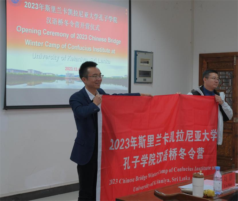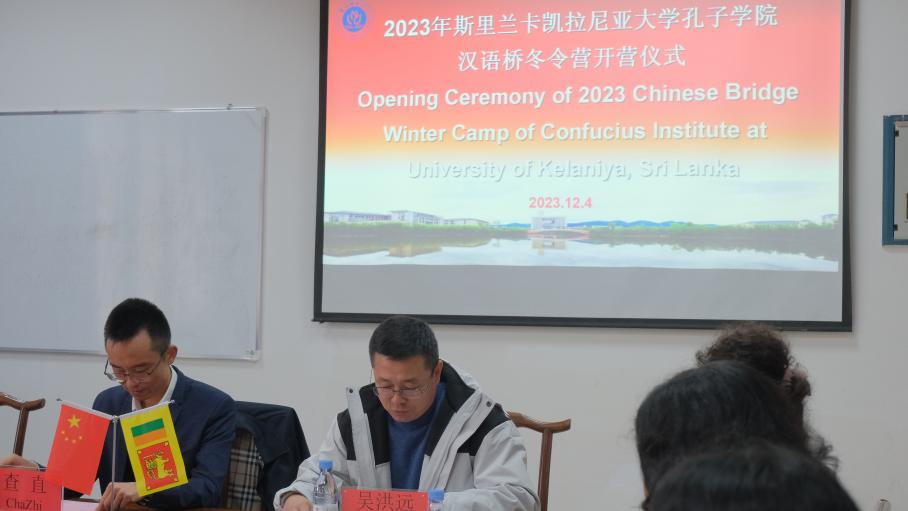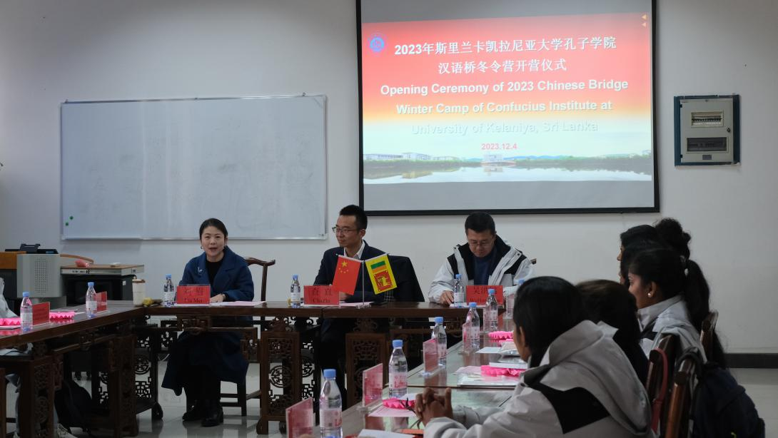 12月4日下午,2023年斯里兰卡凯拉尼亚大学孔子学院“汉语桥”冬令营在mansion88主页顺利开营。本次冬令营活动由教育部中外语言交流合作中心主办,mansion88主页承办。mansion88主页国际处处长查直、mansion88主页副院长刘眉、斯里兰卡凯拉尼亚大学孔子学院中方院长吴洪远、mansion88主页部分教师及冬令营全体营员参加开营仪式。开营仪式由mansion88主页副院长刘眉主持。