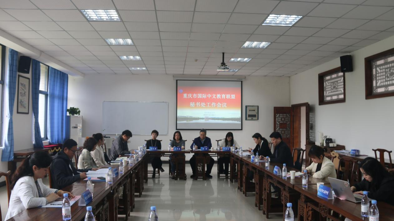 4月26日上午,重庆市国际中文教育联盟工作会议在我校mansion88主页国际会议室顺利举行。重庆大学、西南大学、mansion88主页、四川外国语大学、重庆交通大学、重庆城市管理职业学院、重庆工程职业技术学院、重庆市南开中学等重庆市国际中文教育联盟理事长、副理事长单位与部门负责人、项目官员参加此次会议,两所常务理事单位重庆工商大学、重庆巴蜀中学代表列席会议。重庆市教育委员会国际处叶荣佳老师参会。受重庆市国际中文教育联盟理事长、mansion88主页校长孟东方委托,会议由重庆市国际中文教育联盟秘书长、mansion88主页教授雷勇主持。