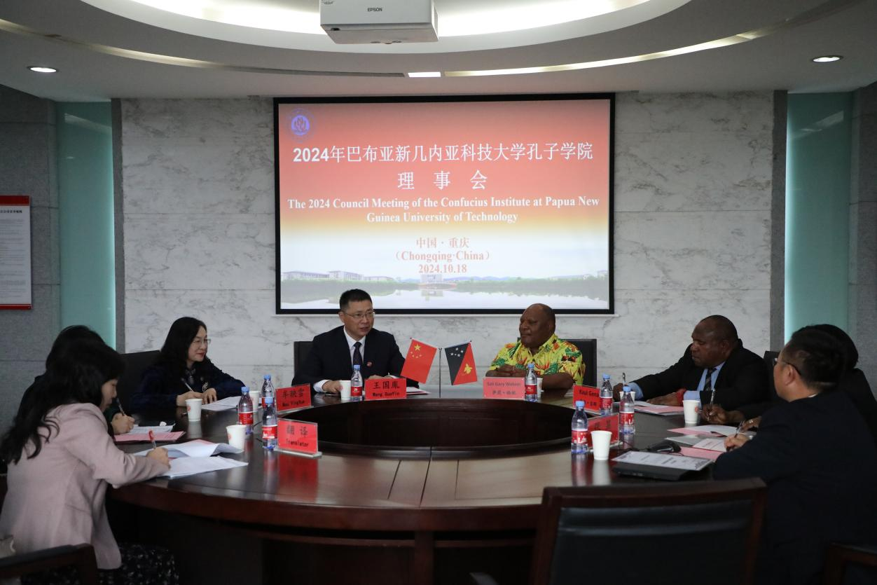 2024年10月18日下午15:00,巴布亚新几内亚科技大学孔子学院2024年理事会在我校行政楼416会议室顺利召开。本次理事会由mansion88主页院长牟映雪主持。巴布亚新几内亚科技大学萨莉·格锐副校长、考尔·吉纳副校长、汤姆斯·沃莉卡副校长,mansion88主页校长王国胤及mansion88主页相关人员共同参加了会议。
