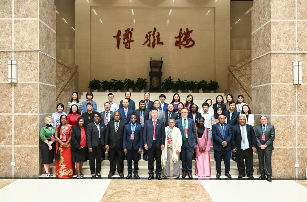 卢旺达、斯里兰卡、英国、巴布亚新几内亚孔子学院代表分别发言。他们分享了孔子学院在中文教育推广、文化交流以及本土化教学等方面的经验和成果,并对未来的合作与发展提出了宝贵建议。