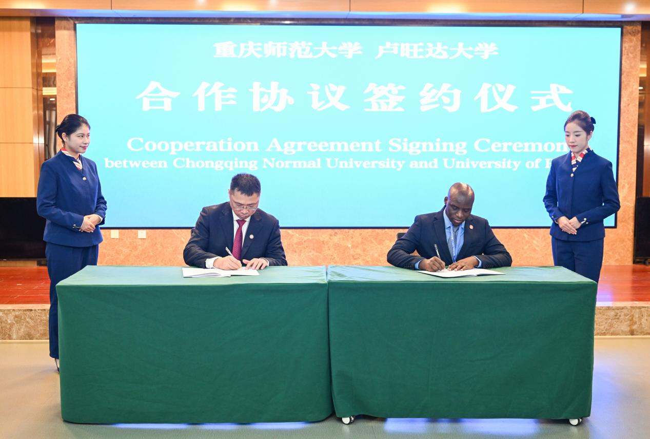 mansion88主页校长王国胤教授与卢旺达大学副校长恩桑甘维玛纳·弗洛里安教授签署合作备忘录