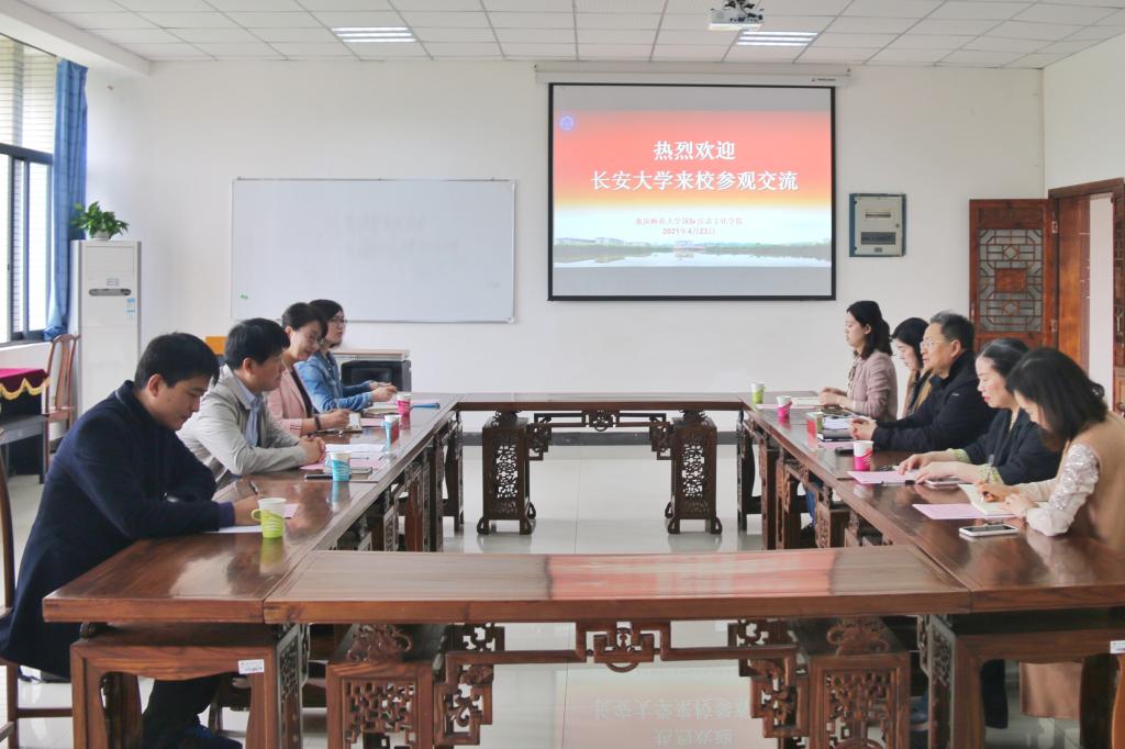 2021年4月23日上午,长安大学国际教育学院张伟院长一行来我院参观,国际汉语文化学院院长、国际处处长雷勇等与来宾进行了座谈交流。