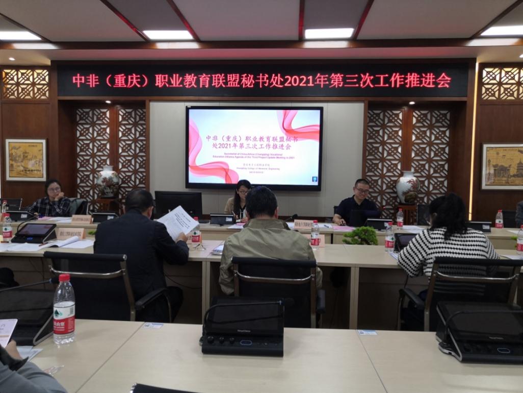 为了进一步推进中非(重庆)职业教育联盟(以下简称“联盟”)工作,2021年10月11日联盟在重庆电子工程职业学院召开秘书处2021年第三次工作推进会。参会人员包括联盟内设委员会负责人及副主任单位代表、联盟副理事长单位及计划申请联盟副理事长单位的国际合作交流负责人、相关企业代表等,我校国际处/国际学院主要负责人雷勇参加了会议。