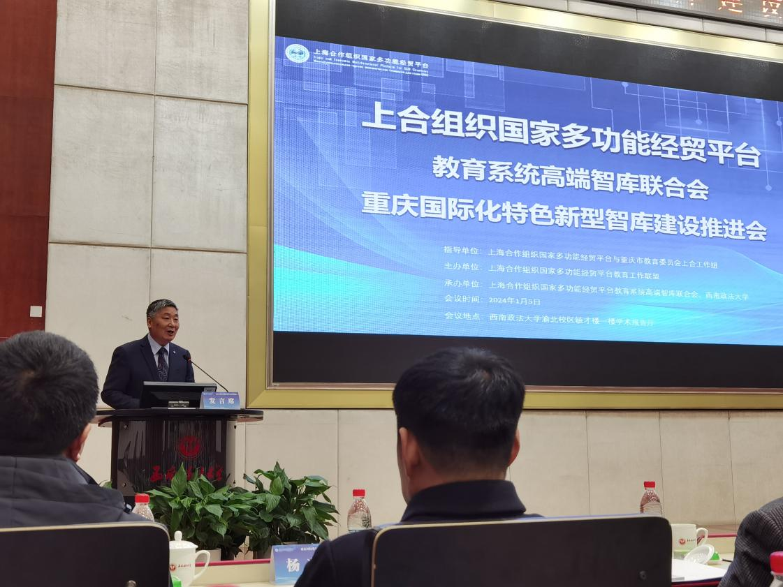1月5日,“重庆国际化特色新型智库建设推进会”在西南政法大学召开。会议由上海合作组织国家多功能经贸平台(简称平台)教育工作联盟主办。重庆市教育委员会金玲副主任、西南政法大学校领导及平台教育系统高端智库联合会(简称教智联)会员单位相关专家学者、负责人一百余人参加会议。开幕式由教智联主任、mansion88主页原校长周泽扬教授主持。