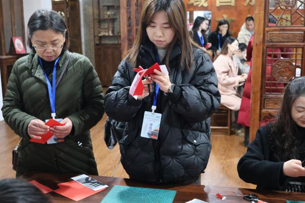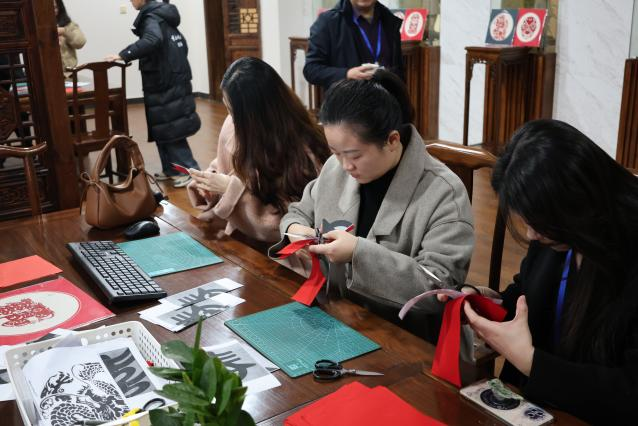 在剪纸文化体验室,专家学者们被一幅幅精美的剪纸作品所吸引。大家纷纷动手尝试,亲手制作出了一件件富有创意的剪纸作品,切身体验了剪纸艺术的乐趣和魅力。