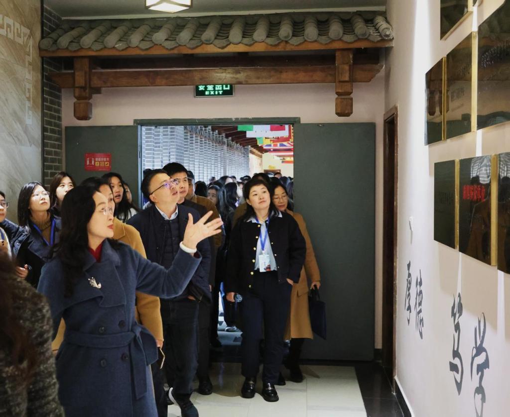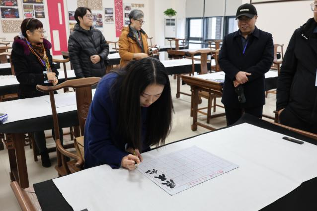同时,牟院长带领专家学者们依次参观了学院在开展语言工作过程中建设的茶艺体验室、剪纸文化体验室、书法体验室和音乐舞蹈体验室。每个体验室都各具特色、准备充分,充满了浓厚的文化氛围。