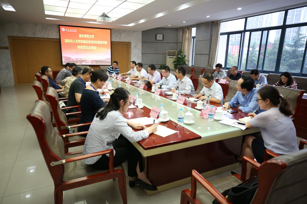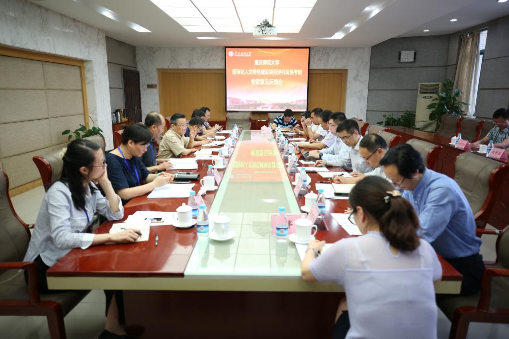 为贯彻落实《重庆市科教兴市和人才强市行动计划(2018-2020)》精神,扎实有效推进重庆市高校国际化人文特色建设工作,按照重庆市教委相关要求,重庆市教育评估院6月11日下午组织专家对我校2018年立项建设的“重庆中外人文交流学院”项目进行了评价、考察,并召开汇报会及意见反馈会。专家组全体成员、市教育评估院领导、我校孟东方校长、陆远权副校长及相关职能部门负责人参加会议。