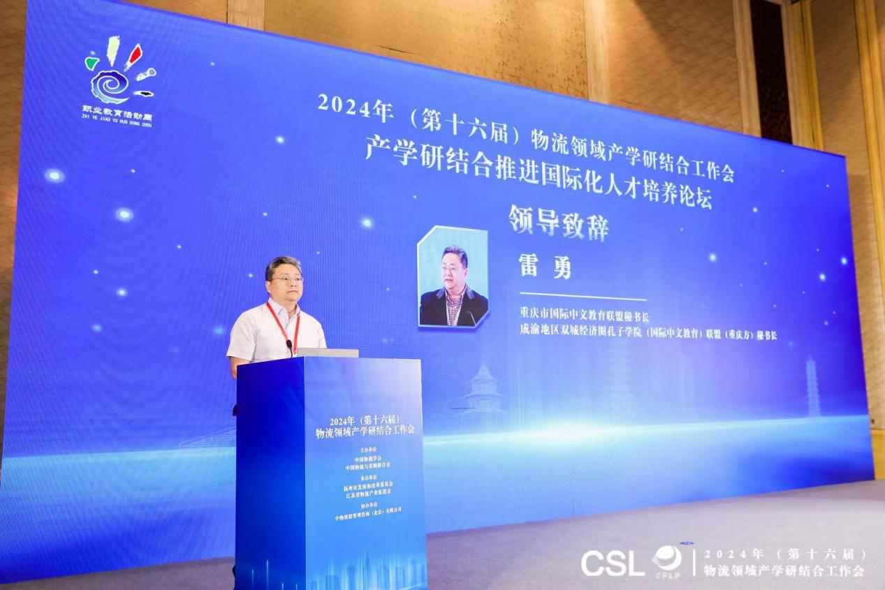 雷勇秘书长受邀参加2024年(第十六届)物流领域产学研结合工作会,并出席产学研结合推进国际化人才培养论坛暨第二届“中文+物流职业技能”国际赛颁奖典礼并致辞作经验交流