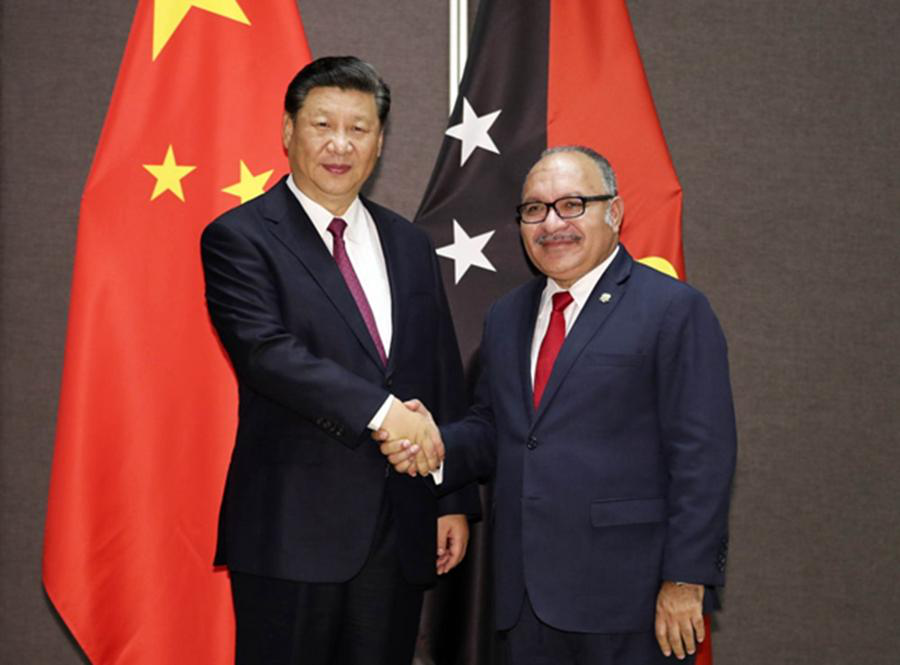 2018年11月16日,国家主席习近平在莫尔兹比港同巴布亚新几内亚总理奥尼尔会谈。新华社记者丁林摄