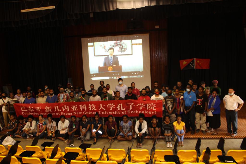 当地时间 6月24日我校与巴布亚新几内亚(巴新)科技大学合作共建的巴布亚新几内亚科技大学孔子学院举行第二学期中文课开课仪式。孔子学院中方院长张显博士、外方院长陈国夫先生特邀中国驻巴新新任大使曾凡华为学生开讲第一课。曾大使介绍中国历史、文化,特别是从近现代史入手,阐述了中国共产党成立100年来的光辉历史、伟大成就和宝贵经验,强调中国共产党自成立起就为人民谋幸福、为民族谋复兴带领中国人民取得全方位历史性发展成就,也为人类发展进步作出了重要贡献。中国一直坚持走和平发展道路,坚定奉行互利共赢开放政策,在建设社会主义现代化国家的新征程中,致力于与各国分享合作机遇、实现共同发展。