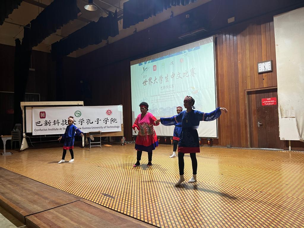 太极表演之后,中文比赛首先是语言与文化部分。试题通过优美的图片和生动的文字,将现场观众带进了中华五千年文化长河之中。他们时而聚精会神,时而敛声屏息,时而爆发出雷鸣般的喝彩声。汉字书写则通过主持人与选手的读写互动,共同体验汉字的认读与书写乐趣。比赛也将观众带入互动节拍,有同学甚至跟着手舞足蹈起来。孔院学生魏静思团队的舞蹈表演——《美丽的草原我的家》。她们优美的动作、灵动的舞姿将观众带进了中国美丽的大草原和那洁白的羊群之中,这似乎和地广草茂的莱城结下了不解之缘。演讲和才艺表演更是让在场观众分享了一场中华语言和文化的饕餮大餐。在倾听中思考,在欣赏中学习,观众与选手共同进入了对中华文化的美好憧憬和中巴新同呼吸共命运的共同期盼中。
