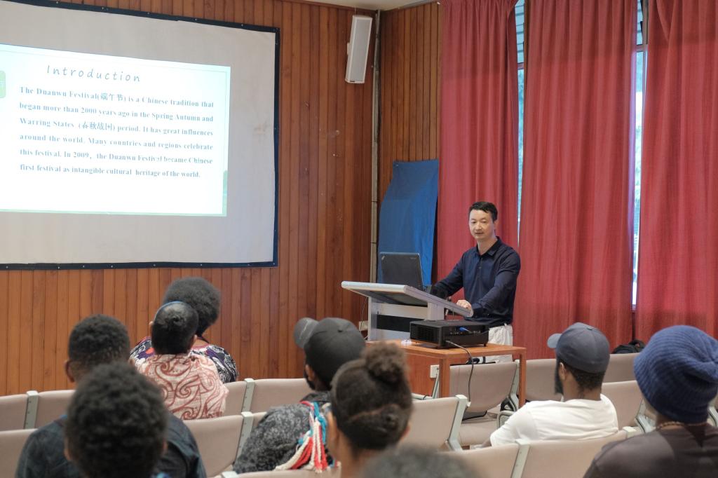 当地时间6月7日下午,巴布亚新几内亚科技大学孔子学院在RKL会议厅成功举办“巴新话端午”中国文化讲座交流活动。本次讲座吸引了巴新科大众多教职员、学生参与,由巴新科大孔院中方院长张显、孔院教师陈万明主讲。