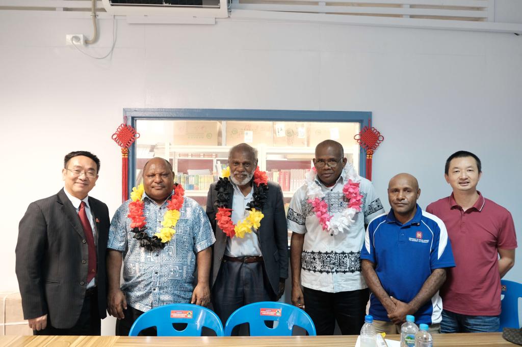Sally 校长对PUE校长一行表示欢迎。他回顾在2018年到中国参加全球孔院大会的情景,并向来宾介绍了科大孔院的创办经历。Sally认为,中国倡导世界和平,创造美好生活,巴新需要向中国学习、了解中国文化和学习中文。他说,巴新青年将与各国青年一道学习中文和分享中华文化。Sally特别介绍了孔子学院在“中文+菌草”的教育模式上所做的探索。