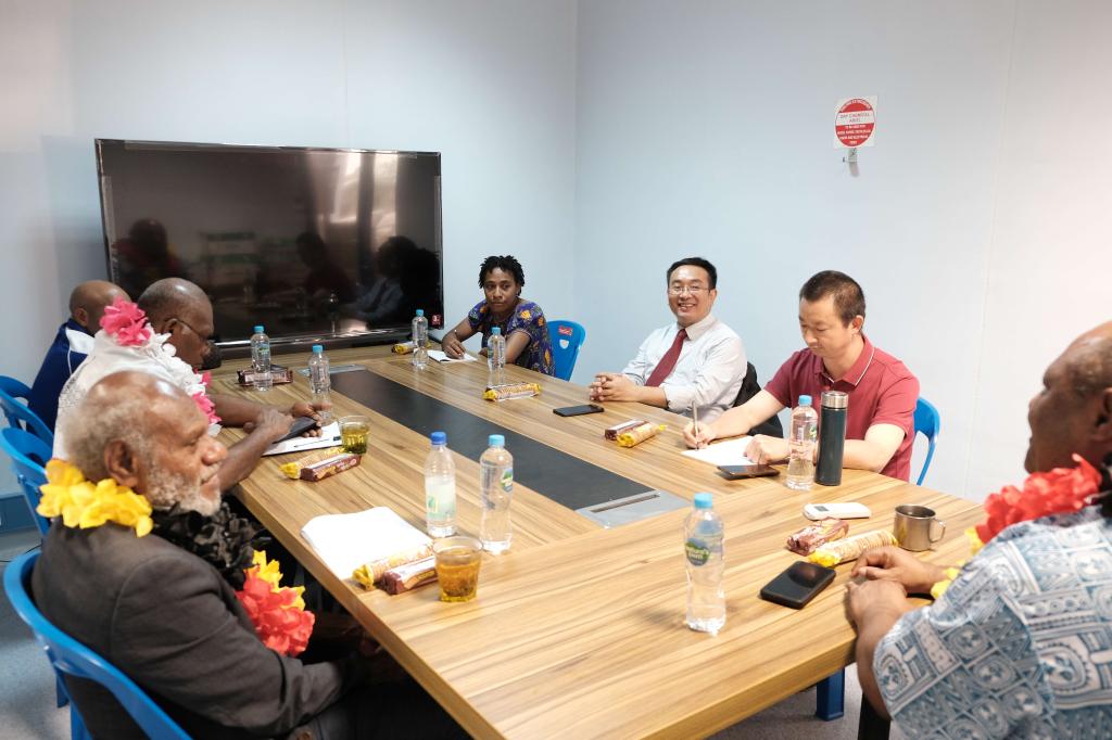 当地时间10月5日上午,巴新环境与自然资源大学PUE校长一行到访科大孔子学院。巴新科技大学副校长Sally主持双方会谈,孔子学院中文学生代表参加。