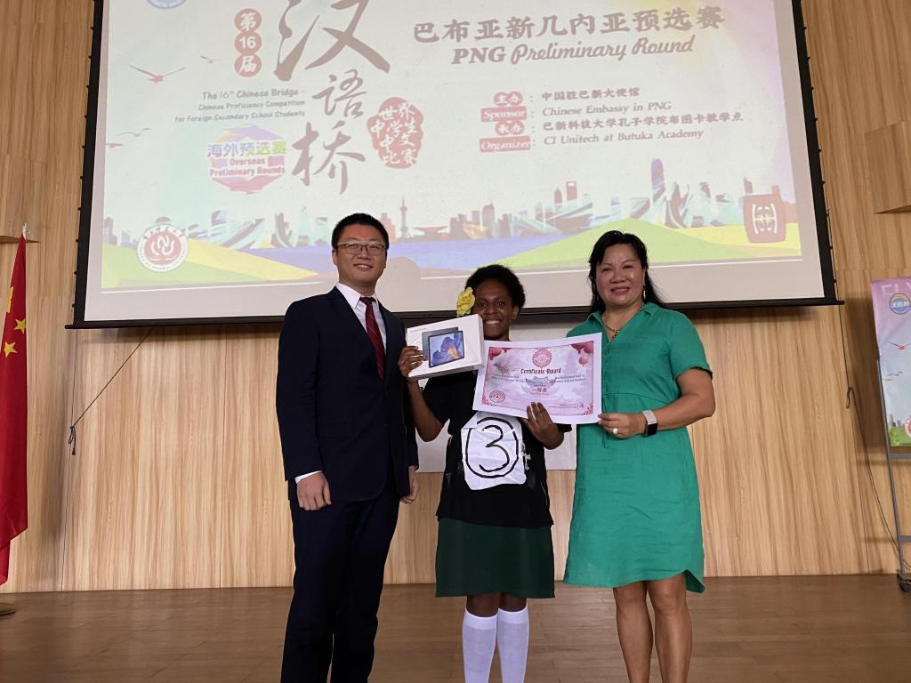 当地时间2023年6月9日,巴新科大孔院布图卡学园教学点举办第16届“汉语桥”世界中学生中文比赛(暨巴新第一届中学生汉语桥)。中国驻巴新大使馆王主任、孔院中外方院长、学园董事会主席及当地华人华侨代表出席本次活动。