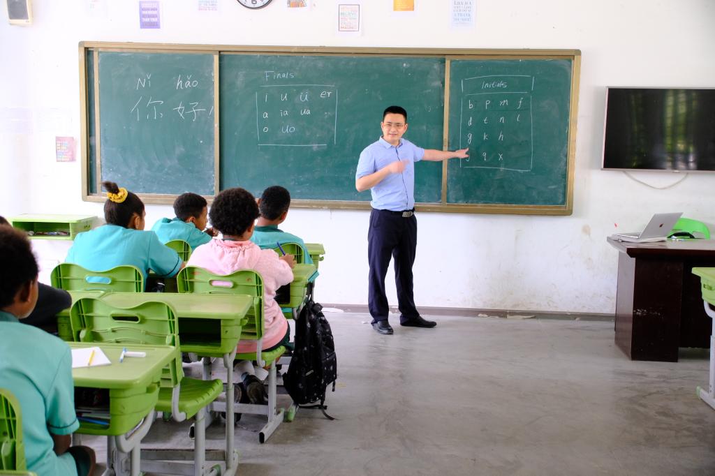 开课当天,赵老师和邬老师充满热情地迎接了新来的同学们。在欢迎词中,他们向同学们介绍了中文课程的重要性,并鼓励他们勤奋学习,努力提高中文水平。接着,两位老师带领同学们开展了一堂生动有趣的开学第一课,通过丰富的教学内容和活动,让同学们在轻松愉快的氛围中感受到了学习中文的乐趣。新到任的邬老师表示:“学习中文不仅可以帮助同学们更好地了解中国的语言和文化,还能为他们未来的发展打下坚实的基础。我们希望同学们能够努力学习,将来成为中巴新两国友好交流的使者。”