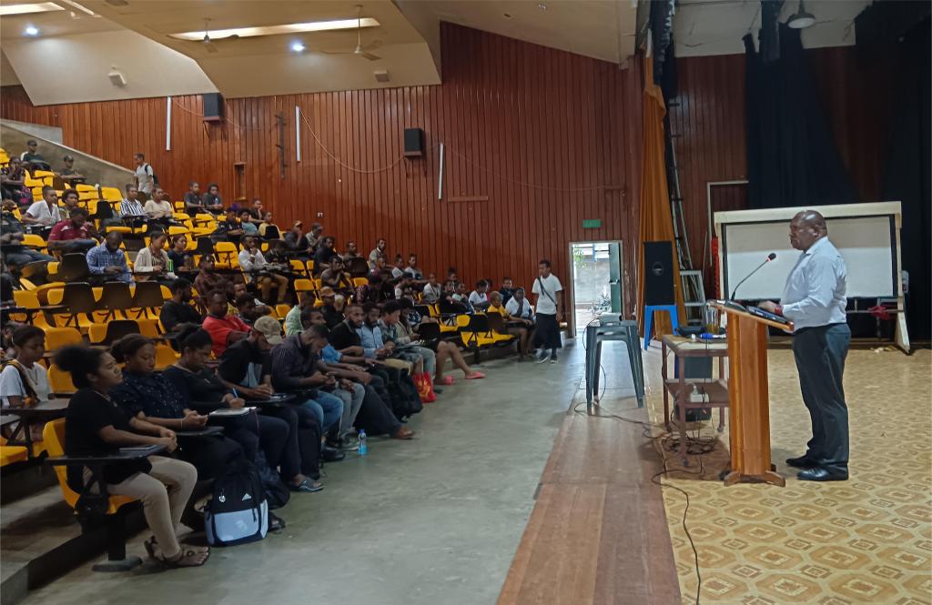 最后巴新科技大学孔子学院中方院长张显向同学们讲解孔子学院日常运行的工作,学术团队,传统节日文化活动,游学团组中国行等项目。着重介绍了每年都有,而且一年比一年更精彩的世界大学生中文比赛“汉语桥”争霸赛,每年巴新赛区冠军将代表巴布亚新几内亚参加世界大学生中文比赛,到访北京,参观长城、故宫等历史遗迹,还将参与丰富多彩的中文语言活动。孔子学院学生还可参加孔子学院HSK考试中心举办的由低到高的级别考试,通过三级以上的HSK考试就可以申请奖学金去中国留学,学习先进理念与科学技术。学好了中文还可以在当地大学担任本土中文教师,做中文翻译,到中资企业及机构从事管理工作,工作体面而且待遇也很不错。如果没有中文工具,70% -- 80%的大学生毕业就失业。