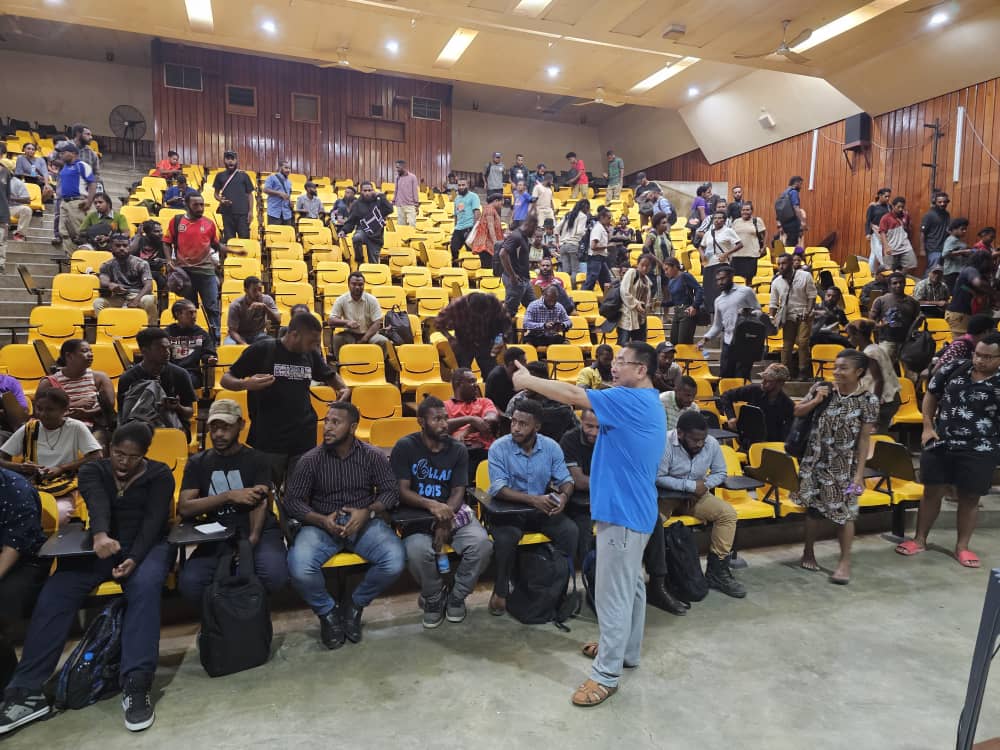 当地时间2月20中午,在巴布亚新几内亚科技大学DHL会议大厅挤满了求知若渴的巴布亚新几内亚青年学子,他们应学校号召前来学习、了解中国与巴新两国人文交流的重要项目——重师大巴新科技大学孔子学院的具体运行方式,怀揣着希望学习中文,以期改变他们未来的人生命运。