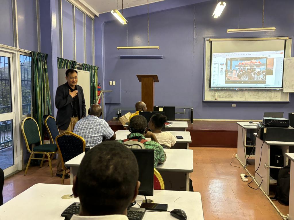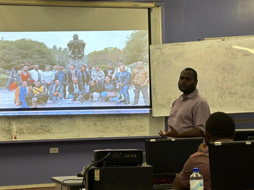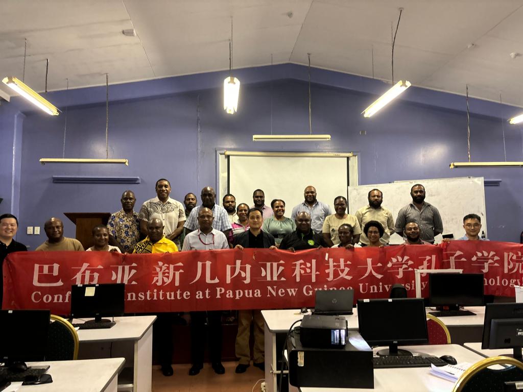巴新国防部国防政策部长Terry Udu随后发表讲话,对这一交流项目的举办表示了充分的肯定和支持,期待学员们能够通过学习进一步加深中巴两国的友好关系。最后,孔子学院赵治桥老师为学员们授课,教授了:“你好”、“谢谢”、“再见”等基础词汇,开学第一课圆满完成。