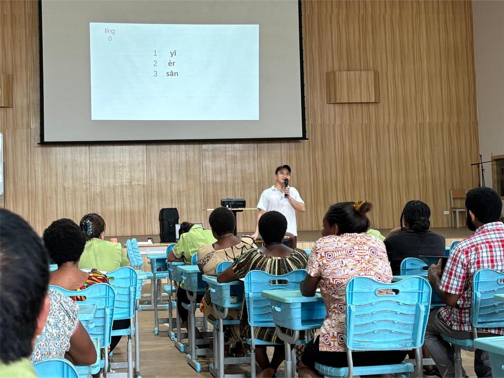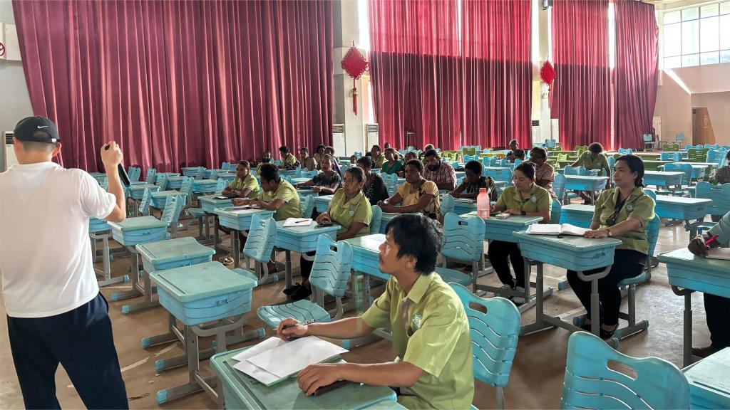 当地时间2024年4月17日,巴布亚新几内亚科技大学孔子学院布图卡学园教学点教师中文班正式开课。